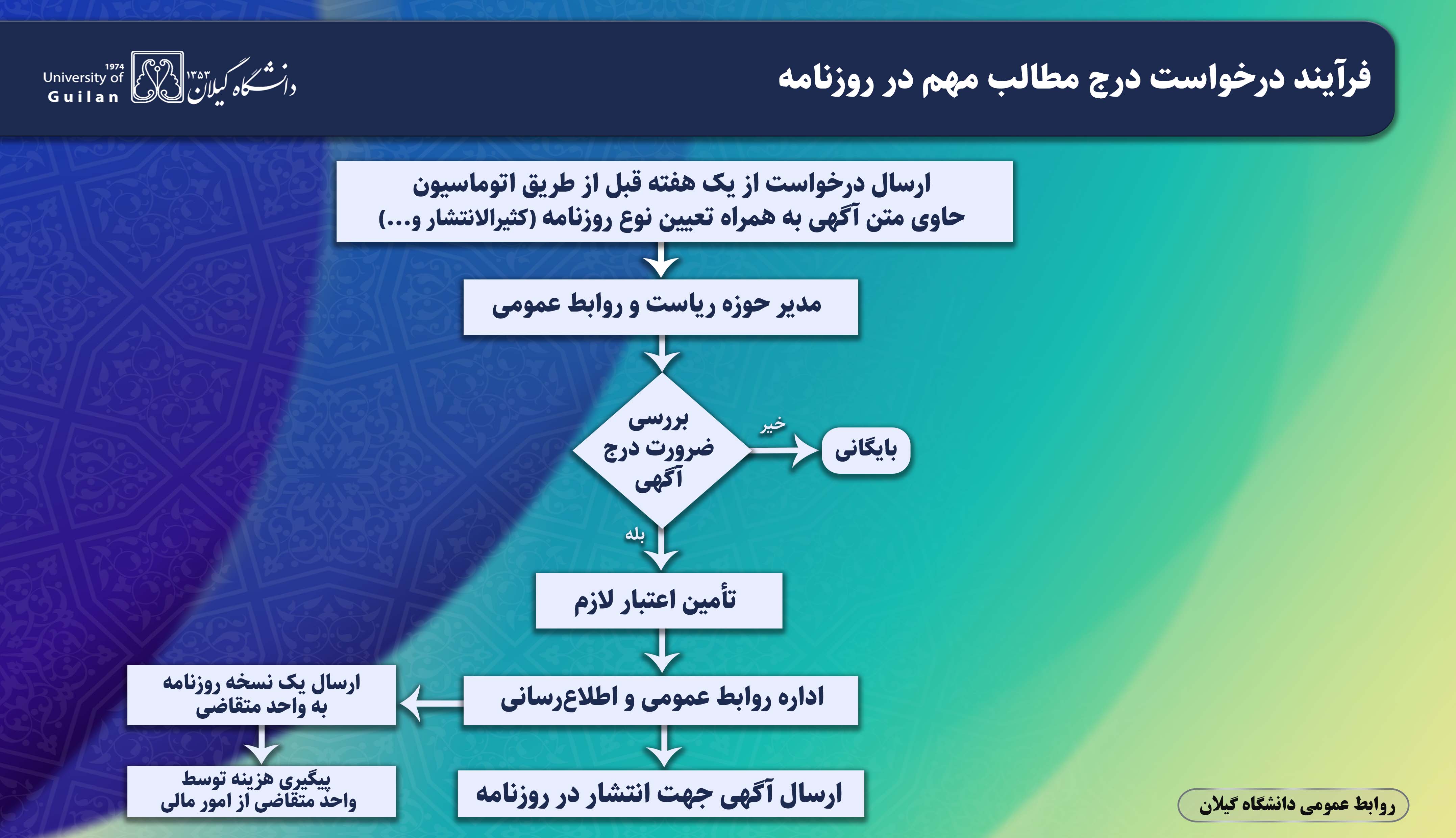 | فرآیند درخواست درج مطالب مهم در روزنامه |