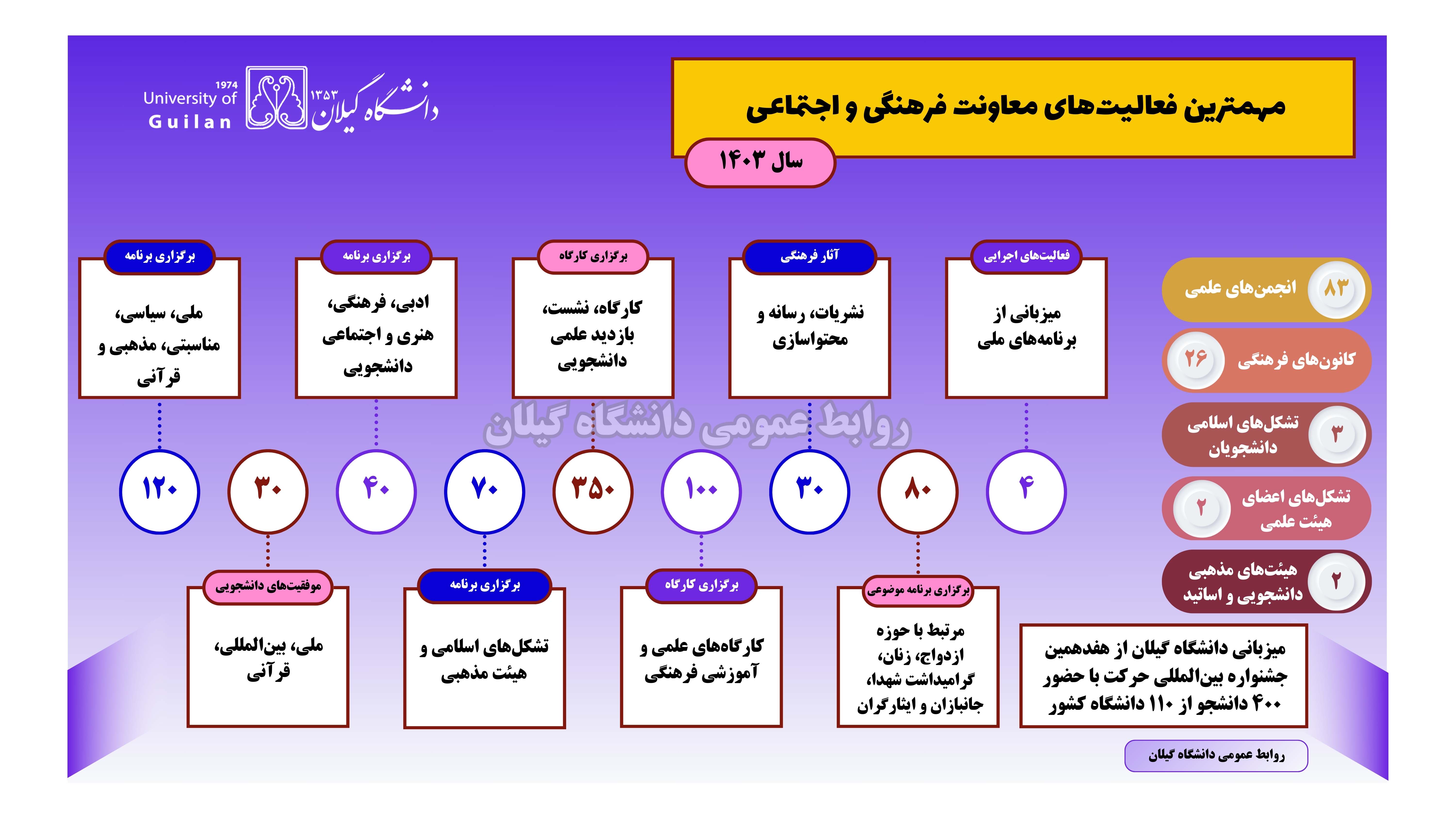 اینفوگرافی مهمترین فعالیت‌های معاونت‌های مختلف دانشگاه در سال 1403